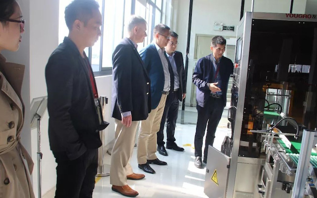 在参观物联网标识行业应用实验中心时,陈文正先生详细的为到访嘉宾逐一介绍了友高1.0到2.0时代的所有产品。重点介绍了友高2.0时代的产品,即友高标识系统YOUGAOMARK系列产品,并通过现场操作演示带领嘉宾了解友高标识系统从前端赋码到识别、采集、关联、直至装箱的整个流程,瓶装线、袋装线以及大箱产品逐一操作。切身的体验、直观的感受,让到访嘉宾对于友高2.0产品赞叹连连。