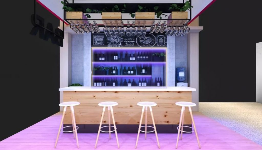理光Pro C7200X在原有三种特殊色白色、透明色、荧光黄的基础上,引入了全新的第五色——荧光粉红。输出的画面效果清晰锐利,让整个吧台区多了几分暗夜里的神秘。